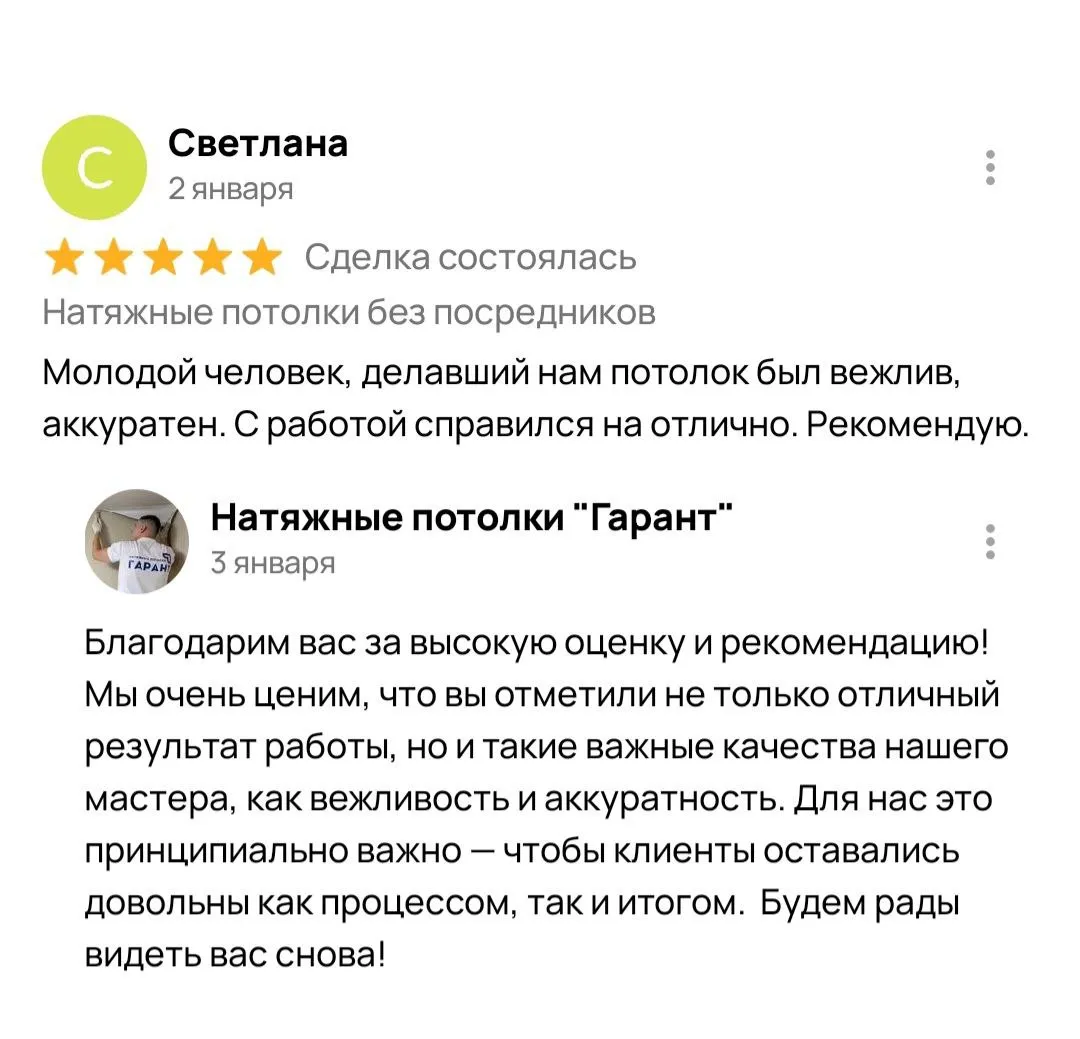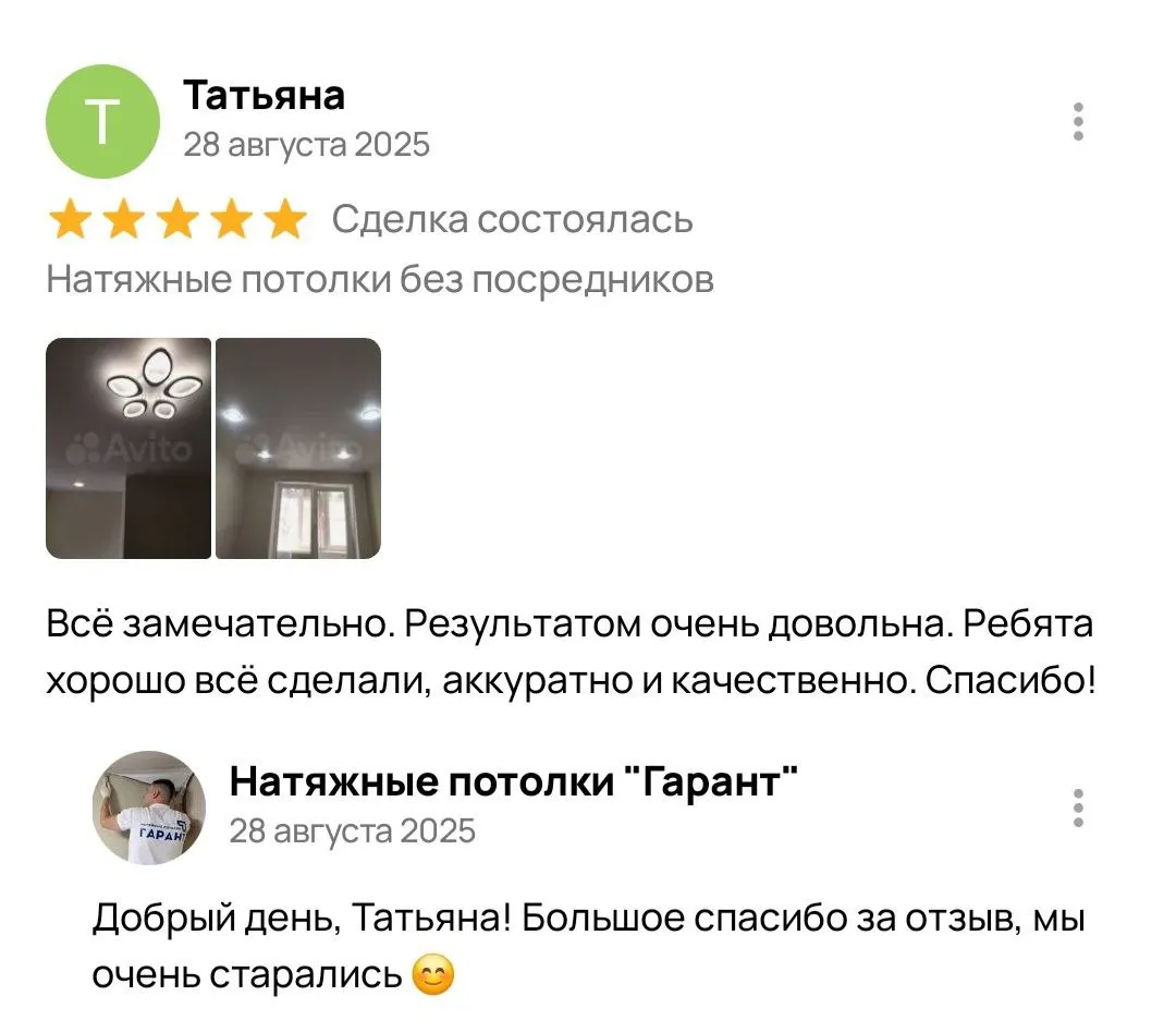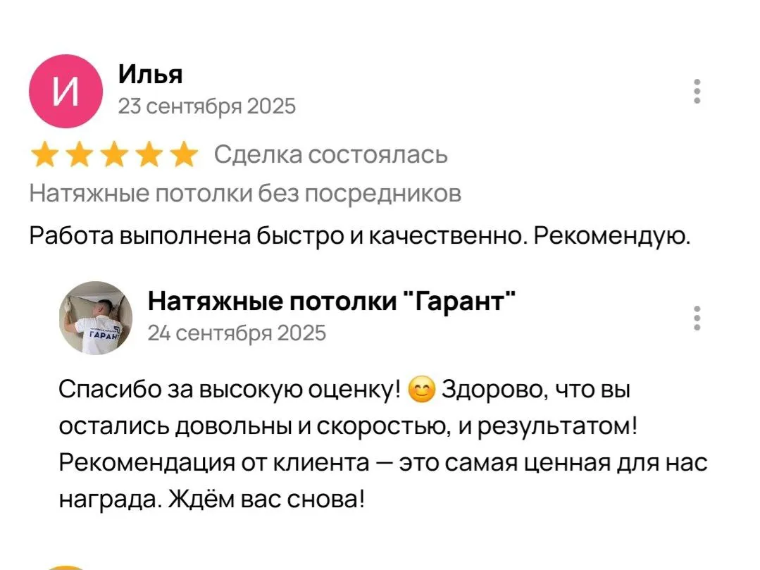 Монтаж за 1 день | 2-й потолок в подарок | Сервис бесплатно | Потолки от производителя | Чистый монтаж с пылесосом | Работа по договору с гарантией 15 лет |